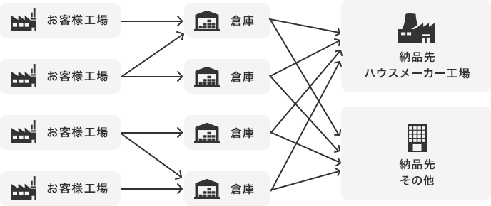 - ハウスメーカー向け倉庫にて各工場の製品を在庫、スピーディな入出荷を実現