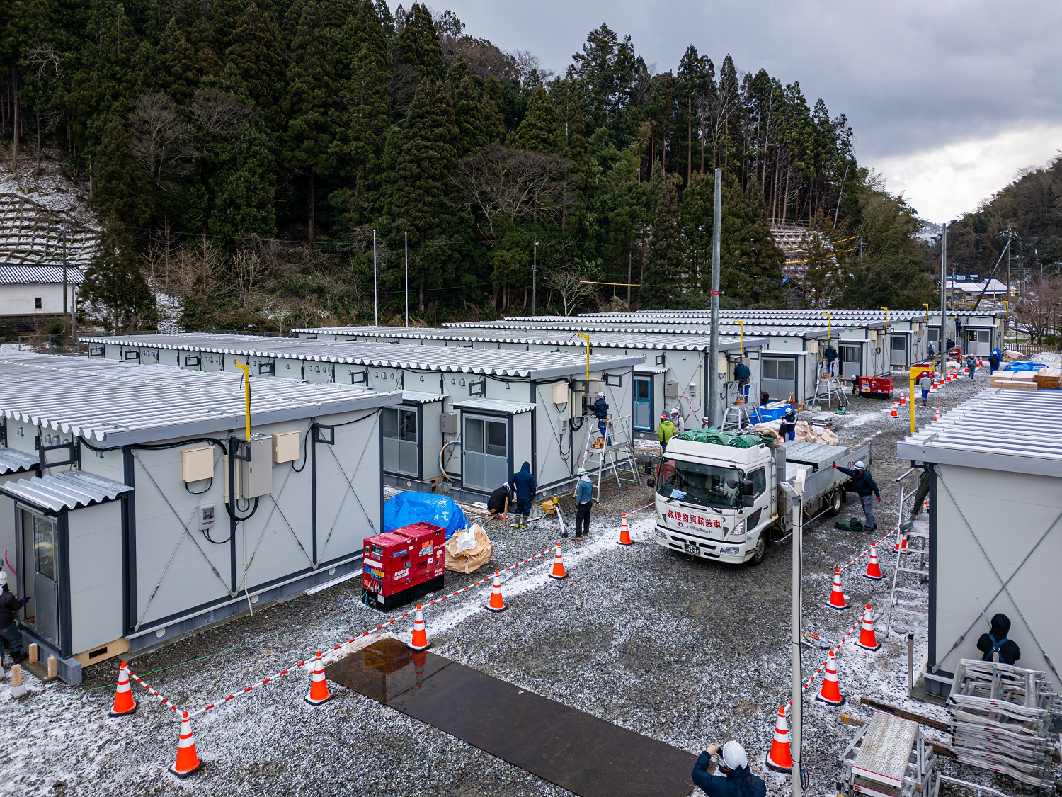 大和ハウスグループでは、大規模災害が発生した際、応急仮設住宅の建設に迅速に対応できるようグループ横断の対策組織を組成しています。当社も大和ハウスグループの一員として、仮設住宅建材の輸配送などを率先して行っています。