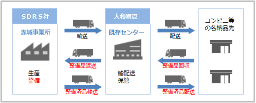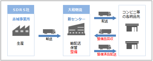 これまで、当社はSDRS社の赤城事業所(群馬県前橋市)が生産した製品の関東エリア向けの輸配送や保管業務を行ってきました。その中で、製品の整備業務が必要となった場合には、既存の物流センターから返送する必要があり、無駄な輸送が発生していました。
