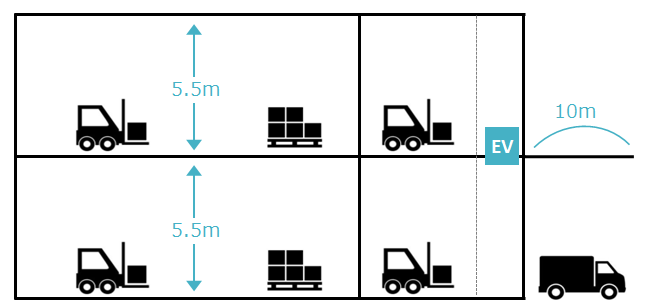 施設面では、トラックバース直結の貨物用エレベータを備えており、効率的な荷役業務が可能です。また、奥行10mの庇を有しており、雨天時でも貨物の積卸しが可能なほか、広い荷捌きスペースを活用した中継物流拠点としての運用にも適しています。
