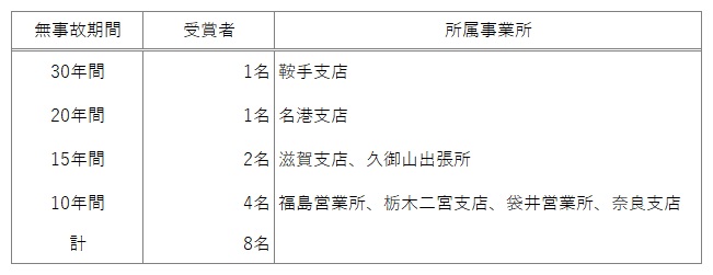 当社は今後も、こうした表彰制度を継続して実施することで、全社で安全意識を醸成し、事故防止に努め、安全かつ安心で高品質なサービスの提供に努めてまいります。