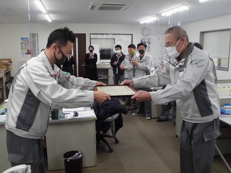 安全運転の意識向上と交通安全の実現に寄与することを目的に、毎年表彰を行っており、2020年度は、8名の従業員を優良運転者として表彰しました。