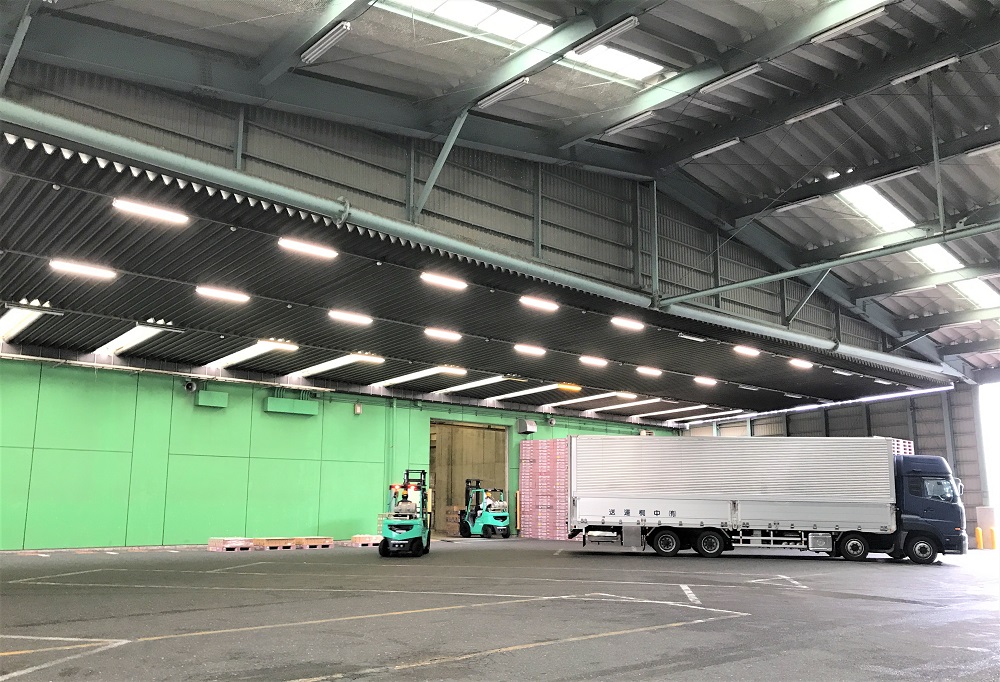 本センターは、建物の両面にトラックバースが設置された物流センターです。北側バースは屋内式となっているため、天候に左右されることなく積卸し作業が可能です。広い荷捌きスペースを生かしたスピーディな入出荷により、納品リードタイムの短縮が図れることから、積替え拠点としての利用にも適しています。