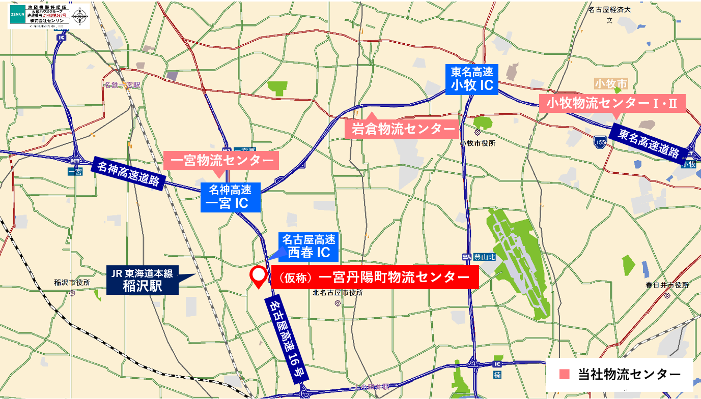 本センターは、名古屋高速16号一宮線「西春インターチェンジ」から約1.5kmに位置し、主要都市である名古屋市内への配送拠点として最適な立地です。