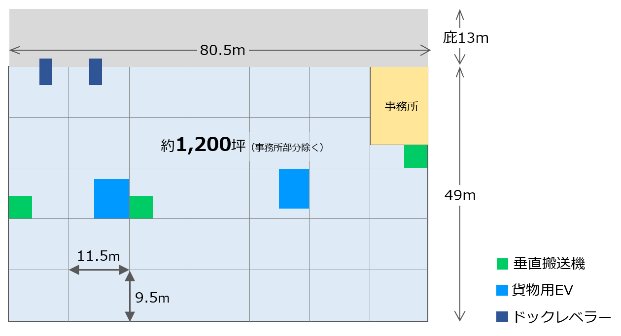搬送設備 | 貨物用エレベーター:2基(3.6t:1基、4.6t:1基) |