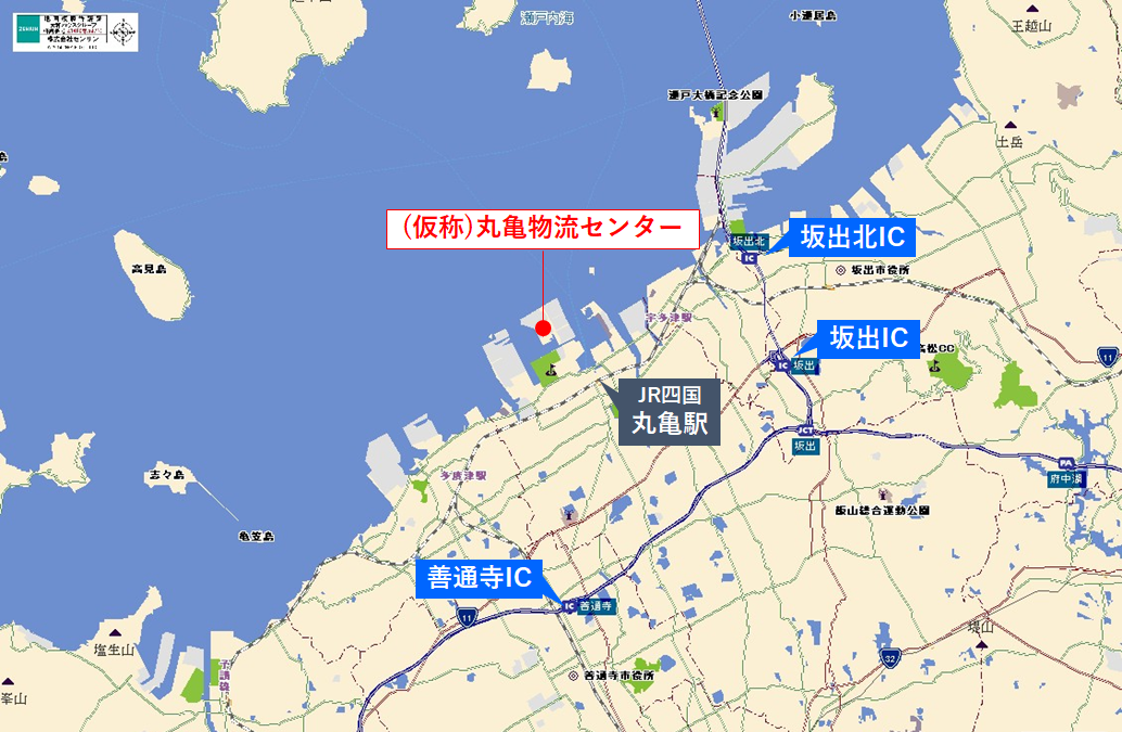 本センターは、瀬戸中央自動車道「坂出北インターチェンジ」や「坂出インターチェンジ」から約9km、高松自動車道「善通寺インターチェンジ」から約8kmに位置し、四国エリア全域に3時間30分以内でアクセスできるため、四国エリアの広域配送拠点として最適な場所に位置します。