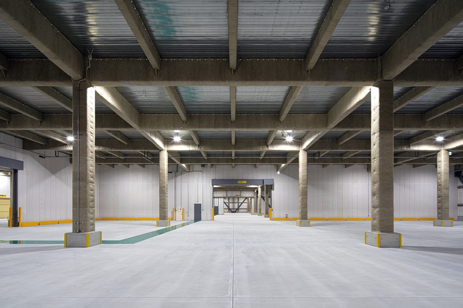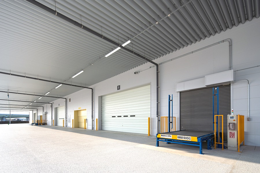 本センターは、低床式ホームで、建材や機械などの重量物の取扱いにも対応可能な床荷重2.0t/㎡の仕様を採用しています。 3層の倉庫内では、トラックバース※4直結の貨物用エレベーターと垂直搬送機を活用し、効率的な荷役業務を行っていきます。