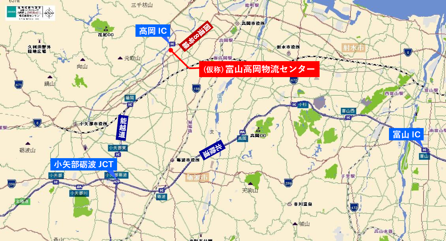 本センターは、能越自動車道「高岡インターチェンジ」から約1.3kmに位置しており、北陸自動車道を経由することで、富山県富山市や石川県金沢市、福井県福井市への配送拠点などとして活用できます。また、北陸自動車道と東海北陸自動車道の結節点となる「小矢部砺波ジャンクション」まで約15km(車で約15分)圏内のため、中京圏や近畿圏との広域配送にも優れた立地です。