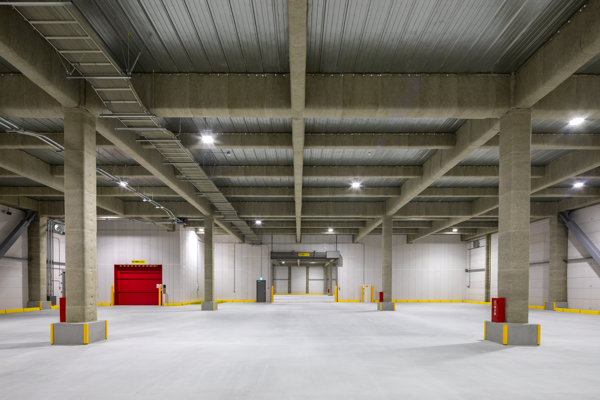 本センターは、延床面積を建て替え前の 2,554 ㎡(約 772 坪)から 11,676 ㎡(約 3,532 坪)に拡張しました。施設内に埃が入りにくい高床式ホームを採用し、搬送装置(ドックレベラー)を設置しているため、衛生管理をともなう貨物や海上貨物の取り扱いにも対応可能です。