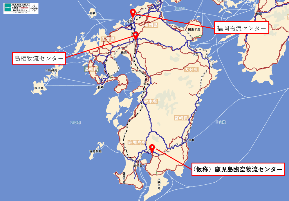 当社はこれまで九州エリアにおいて、九州全域をカバーする物流拠点として「福岡物流センター」(福岡県糟屋郡)と「鳥栖物流センター」(佐賀県鳥栖市)を、二次配送拠点として「鹿児島営業所」(鹿児島県霧島市)を運営してきました。