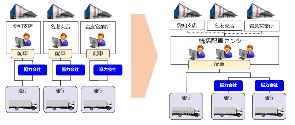 当社ではこれまで、物流センターの作業進捗との連携を重視して各物流センターに担当者を配置し、拠点ごとに配車業務を実施してきました。