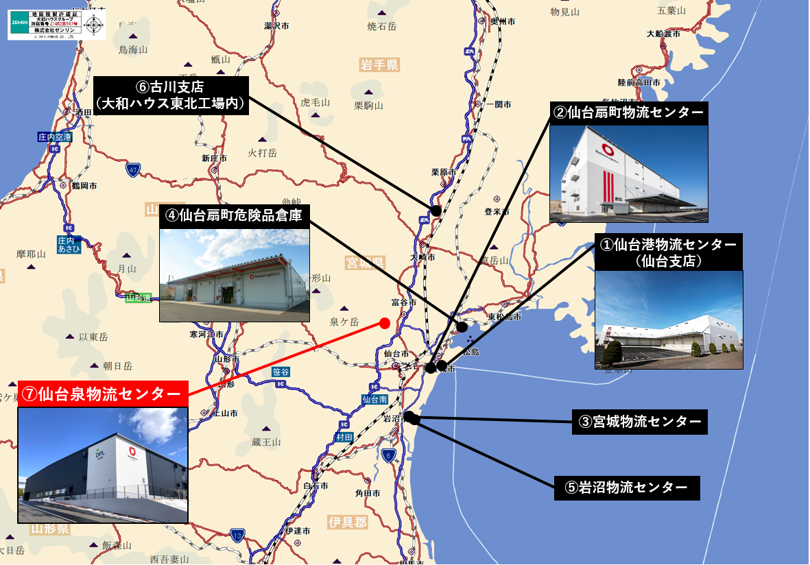 また、「泉パークタウン工業流通団地」が所在する仙台市泉区北部地域には、先端産業を中心とした企業の集積が図られているため、先端電子部品などの取り扱いにも対応した物流センターとして運営してまいります。