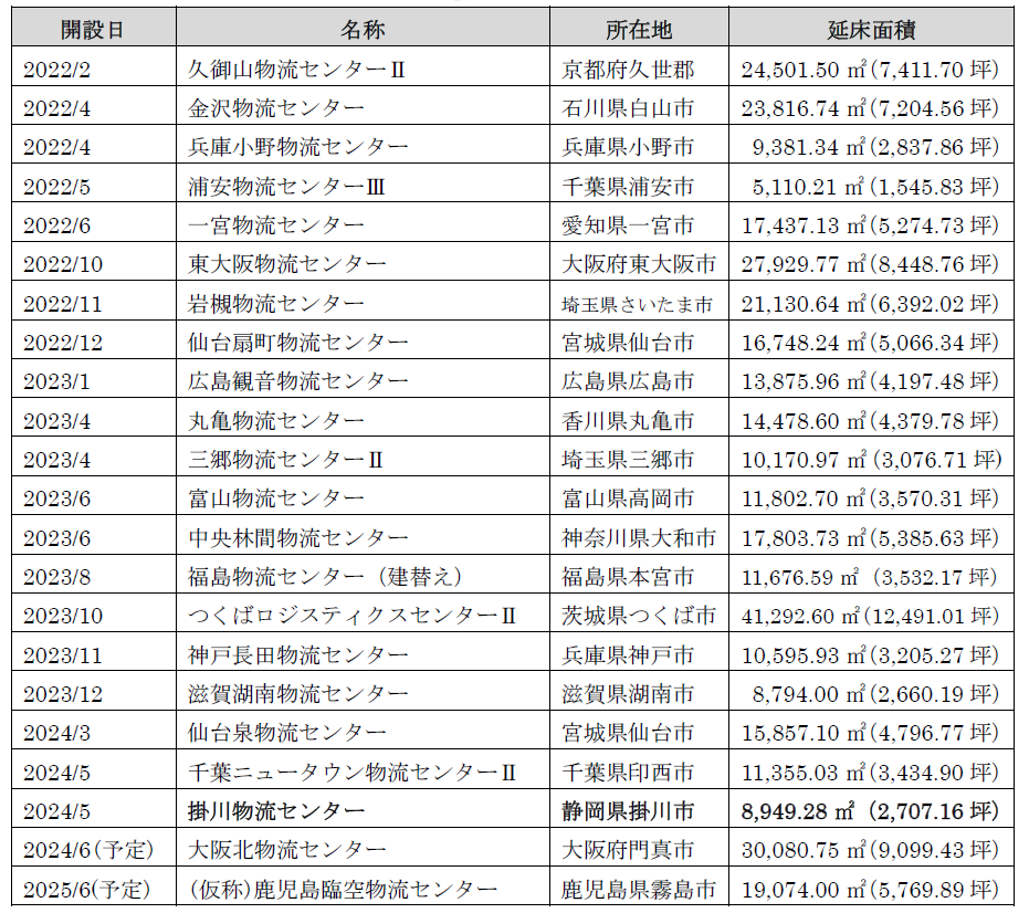 当社は、2024年問題に対応した物流センターネットワークの見直しを進めており、2022年以降に当社が開設した物流センターは、22カ所・総延床面積11万坪に上ります(完成予定のものも含む)。