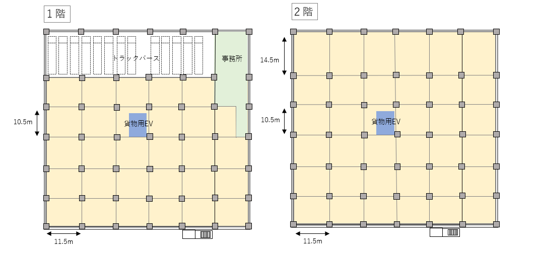 当社運用区画 | 1階・2階の一部(倉庫B区画) |