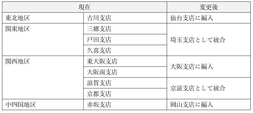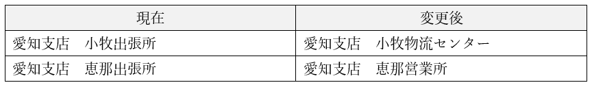 支店統廃合および各拠点の名称変更のお知らせ