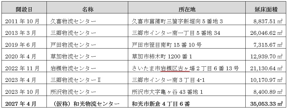 そうした中で、当社は物流量の多い関東エリアにおける物流ネットワークの構築のため、埼玉県で7棟の物流施設を運営しています。