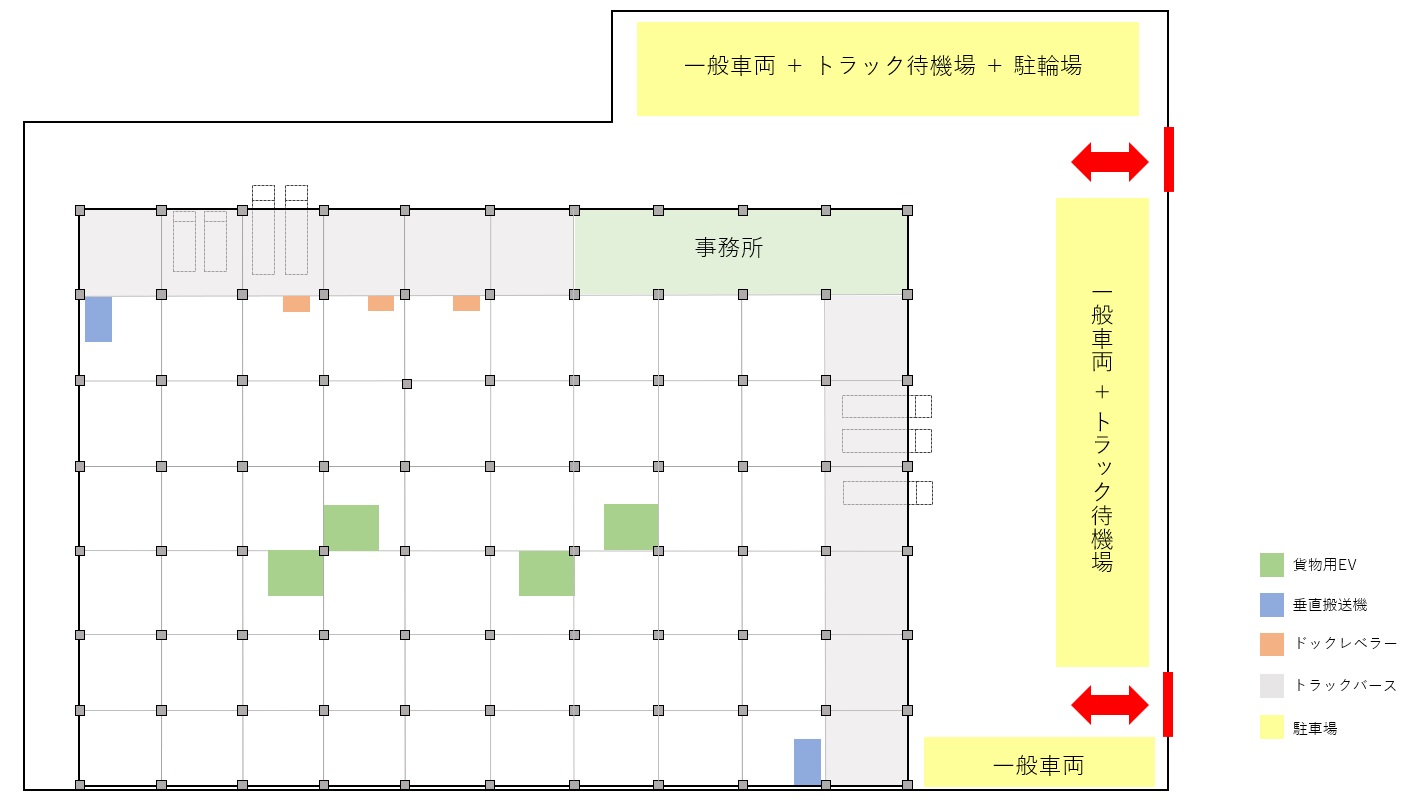 さらに、雨天や強風などの悪天候時でも作業が可能となるよう、両面のトラックバースを屋内に設けます。