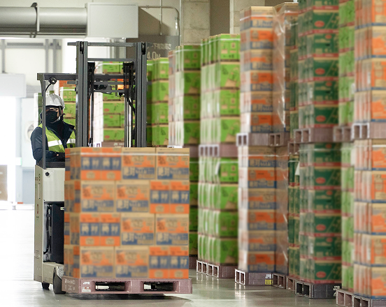 全国にある物流センターで、商品の保管、仕分け、梱包、出荷までを一貫して行っています。ラベル貼りや詰め合わせなどの加工作業にも対応し、お客さまの事業を支えています。