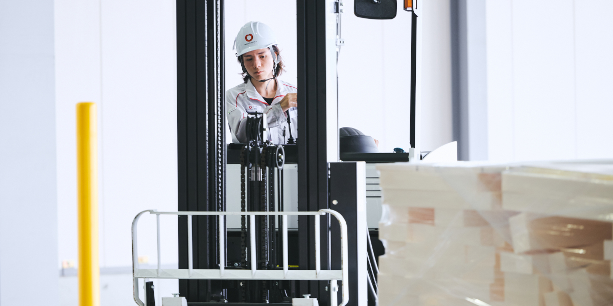 門真物流センターで作業職として働いています。自分の作業だけでなく、派遣社員の方4〜5人に指示を出すのも仕事の一つです。扱っているのはシステムキッチンやシンクといった住宅設備で、メーカーから届いた製品を倉庫に保管して、注文に応じてフォークリフトでトラックに積み込み、配送先に出荷する仕事です。