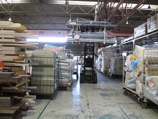 大和ハウスの工場内でフォークリフトを使用した住宅部材
