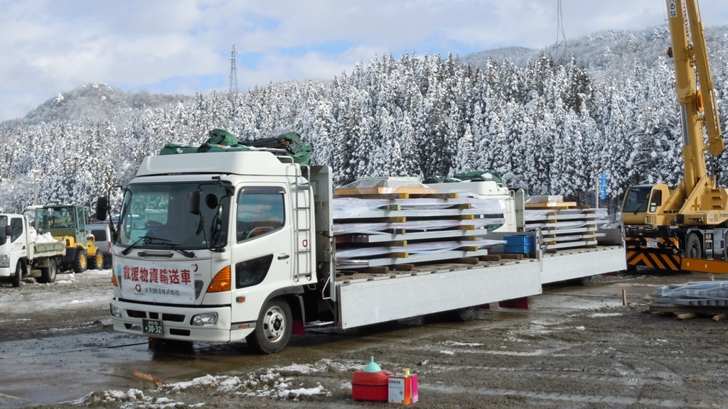大和ハウスグループでは、大規模災害が発生した際、応急仮設住宅の建設に迅速に対応できるようグループ横断の対策組織を組成しています。当社も大和ハウスグループの一員として、仮設住宅建材の輸配送などを率先して行っています。