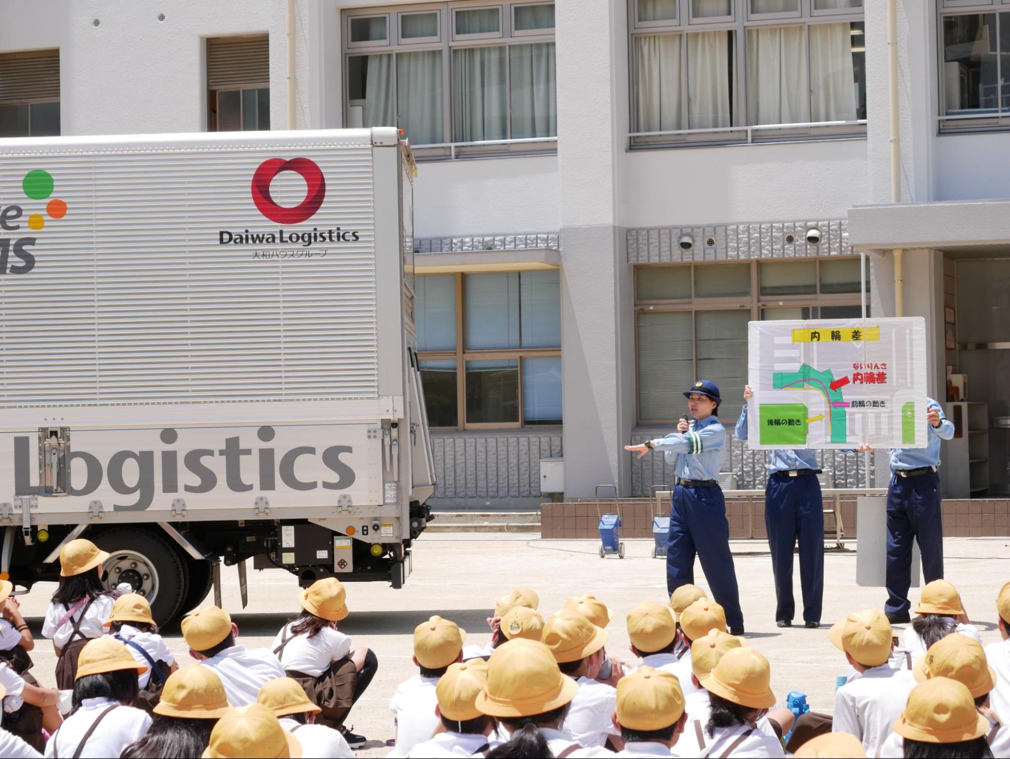 警察署が主催する小学校の交通安全講習において、トラックの貸し出しなどの協力を行っています。