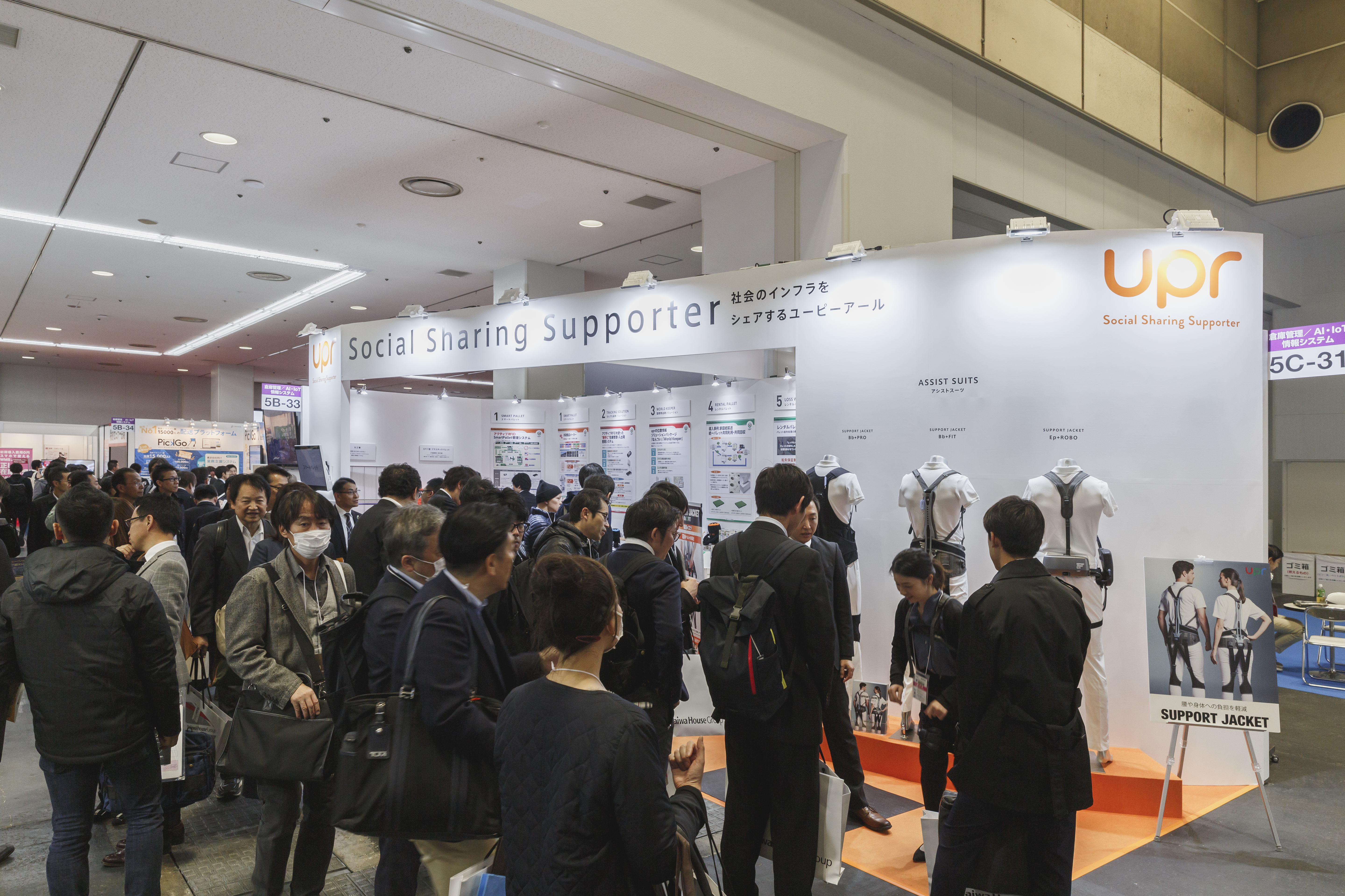 今回の出展ブースでは、物流の現場で働く人材の身体を守りサポートする「アシストスーツ」を大々的に展示。