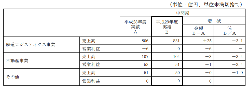 ■JR貨物の鉄道ロジスティックス事業の業績(平成30年3月期-上期)